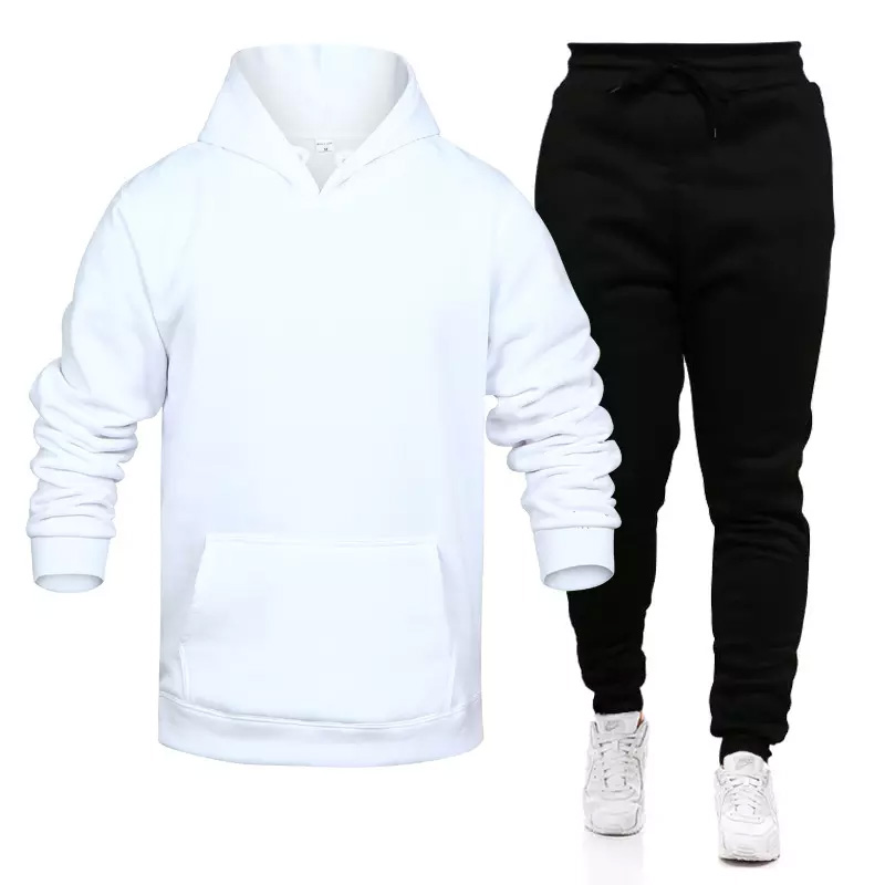 Long Sleeve Casual Wear 2 Piece Men Sweatpants Hoodies and Jogger Sets White