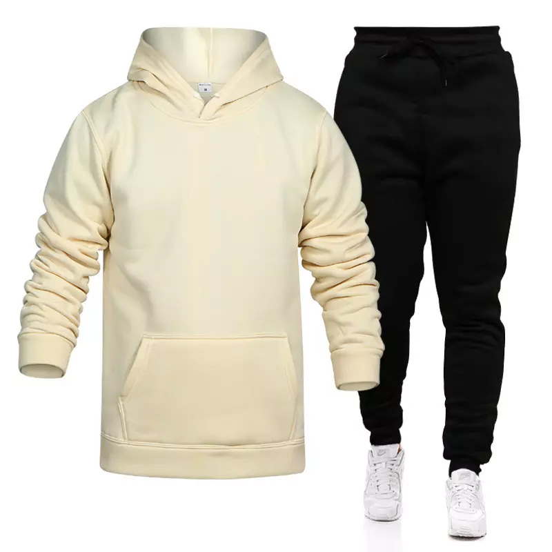 Long Sleeve Casual Wear 2 Piece Men Sweatpants Hoodies and Jogger Sets Light Yellow