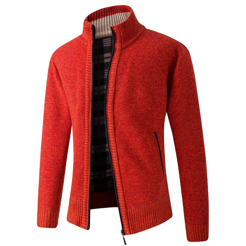 Men’s Cardigan Sweater Knitting Winter Full Zipper Long Sleeve Orange