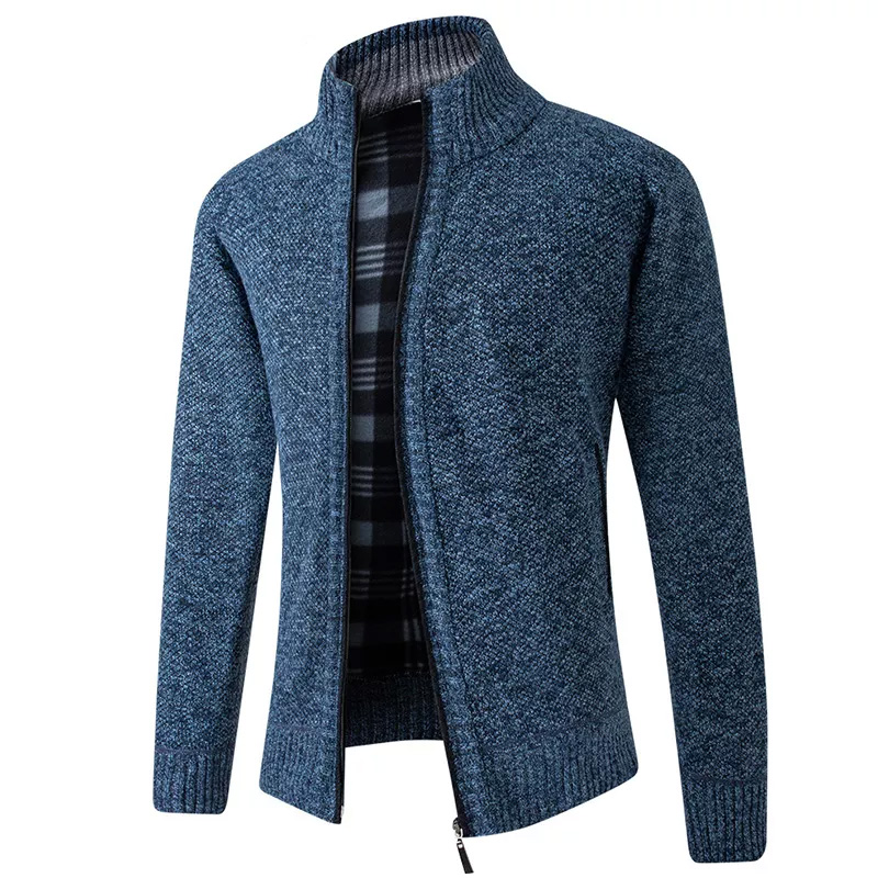 Men’s Cardigan Sweater Knitting Winter Full Zipper Long Sleeve Blue Grey