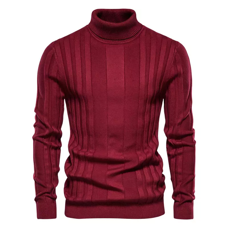 Turtleneck Fashionable Winter Men Knitted Sweater Red