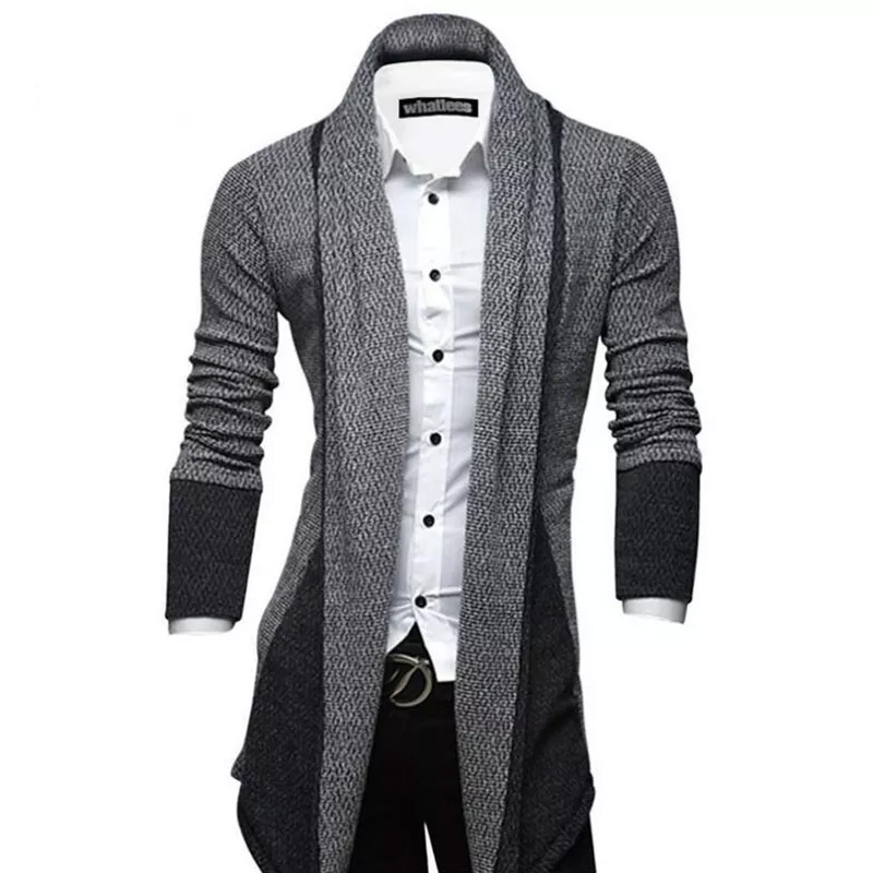 Fashion Design Men Loose Comfortable Long Sweater Cardigan Light Grey