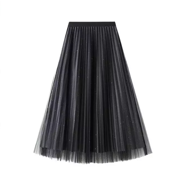 Women’s Autumn Bright Silk Half-Length Skirt Light Black