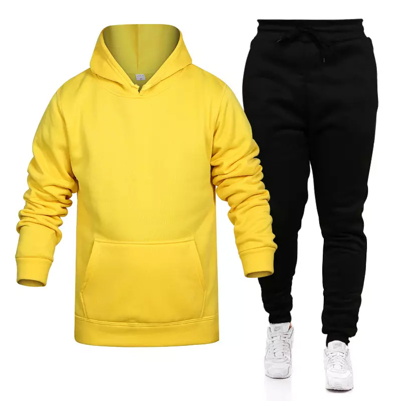 Long Sleeve Casual Wear 2 Piece Men Sweatpants Hoodies and Jogger Sets Yellow