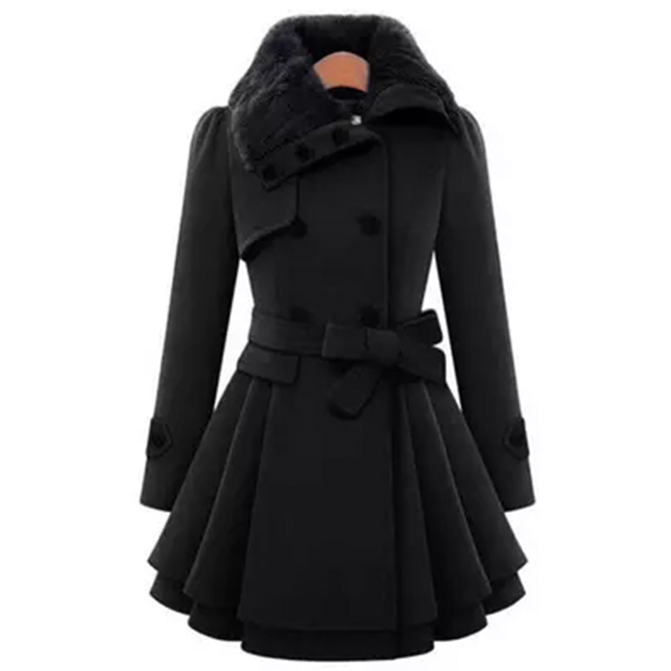 Women’s Warm Faux Fur Collar Wool Long Coat Black