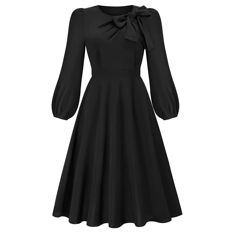 Women’s Fall & Winter Long Sleeve A-Line Dress Black