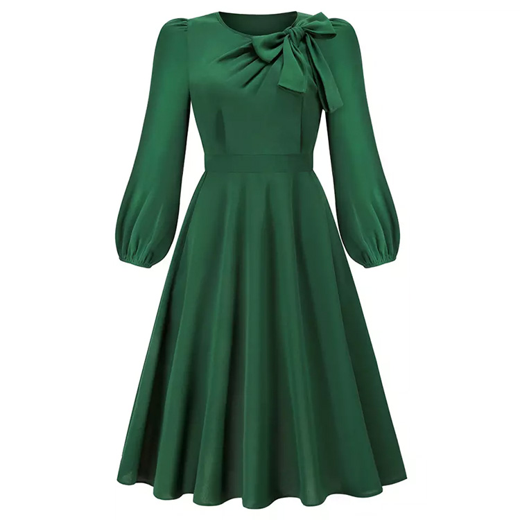 Women’s Fall & Winter Long Sleeve A-Line Dress Green