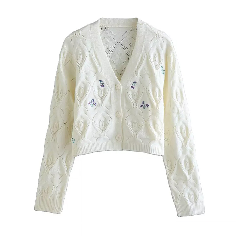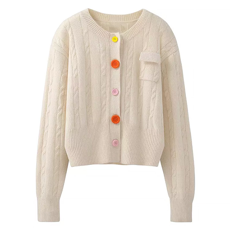 Women’s 2-Color Knitted Retro Long-Sleeved Women’s Cardigan White
