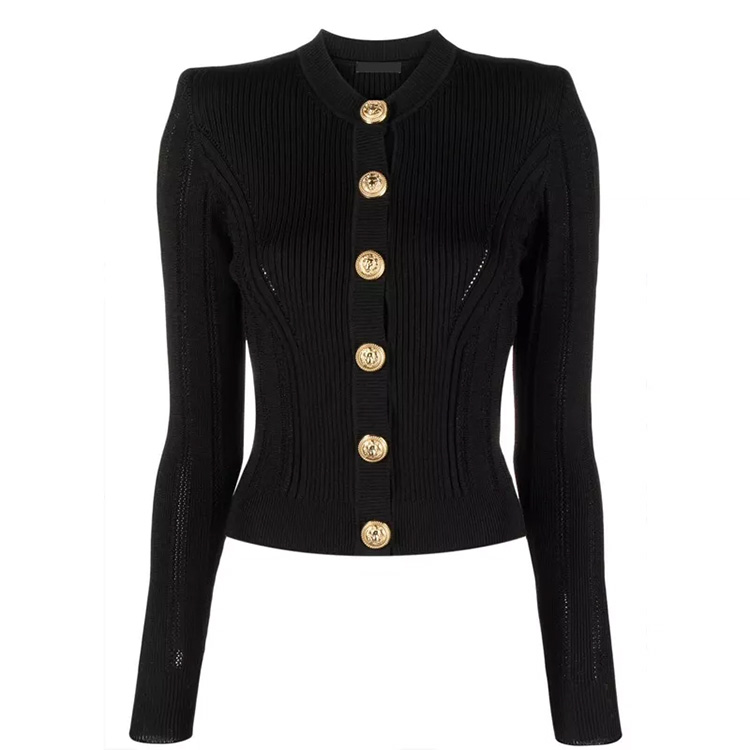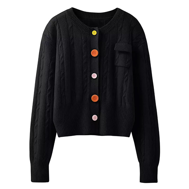 Women’s 2-Color Knitted Retro Long-Sleeved Women’s Cardigan Black