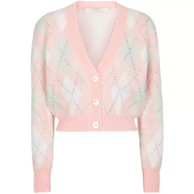 Women’s 2-Color Knitted Retro Long-Sleeved Women’s Cardigan Pink