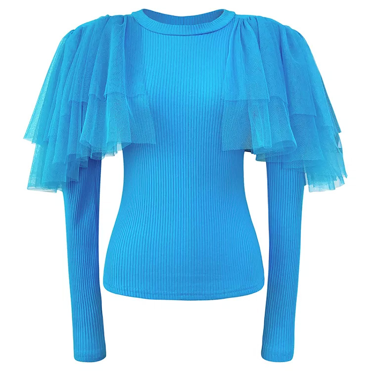 Women’s Slim Fashion Mesh Ruffle Top Blue
