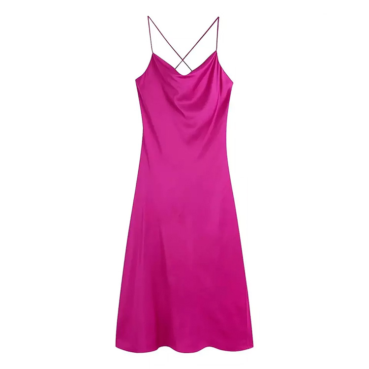 Women’s Suspenders Open Back Satin Long Dress Dark Pink