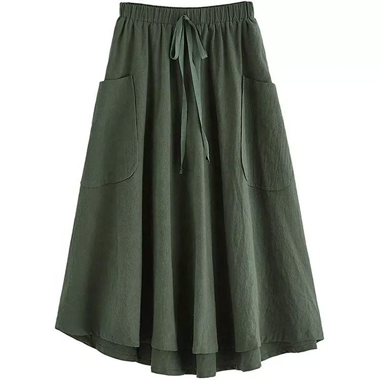 Women’s Long A-Line Pockets Skirt Army Green