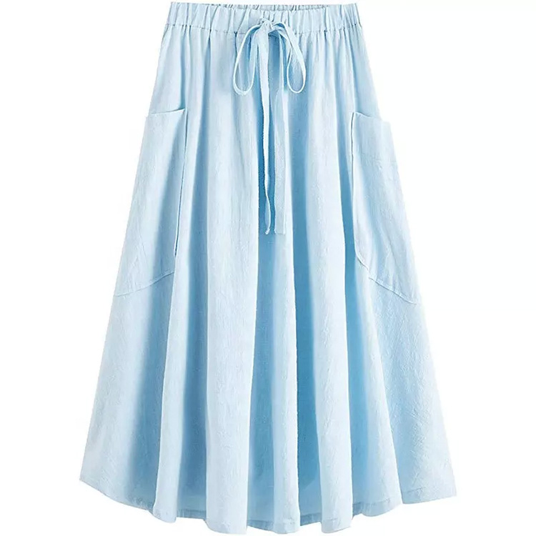 Women’s Long A-Line Pockets Skirt Light Blue