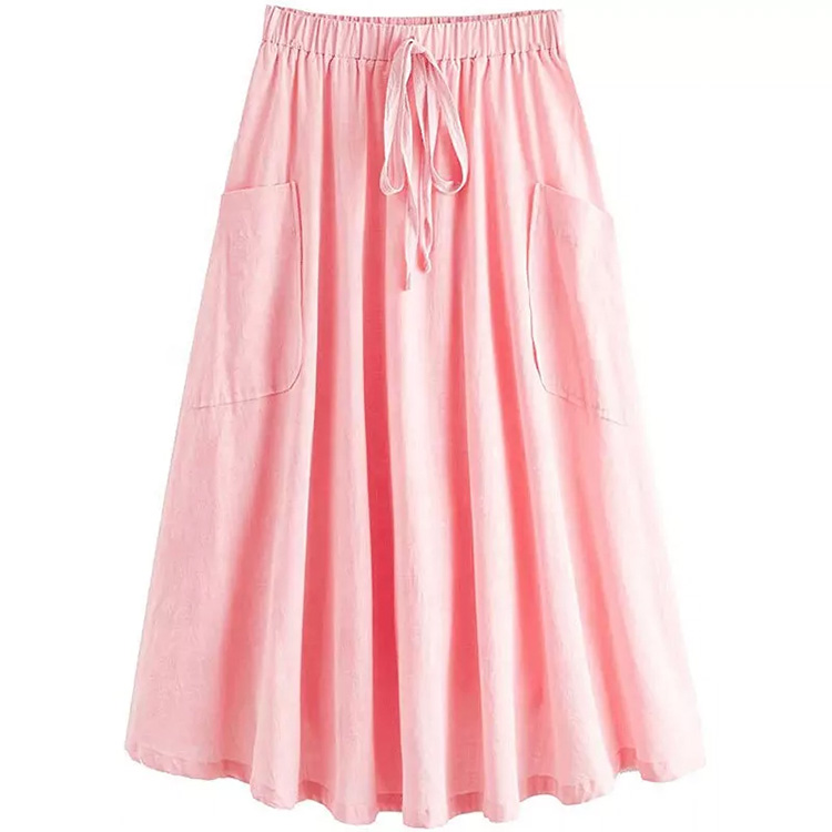 Women’s Summer Vintage Casual Long Skirt Pink
