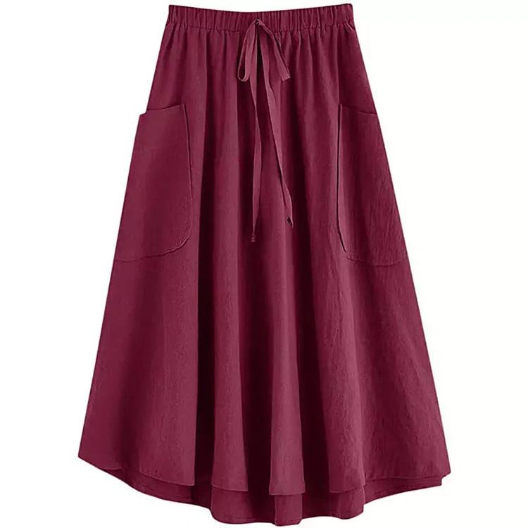 Women’s Long A-Line Pockets Skirt Wine